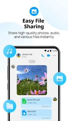 Al di là delle chiamate, imo si rivela un centro di messaggistica completo. Scambia testi, messaggi vocali, foto e video in alta risoluzione, insieme a documenti di ogni formato, con estrema facilità. Tutti i tuoi scambi e file possono essere sincronizzati in modo sicuro nel cloud di imo, liberando spazio prezioso sul tuo dispositivo e garantendo che nulla vada mai perduto. La condivisione di file è intuitiva: basta un tocco prolungato per salvare e una gestione automatica li mantiene sempre organizzati, preservando la loro qualità originale in ogni trasferimento.