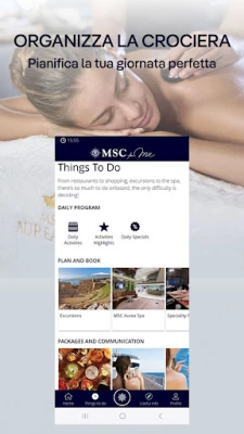 MSC for Me: la tua compagna di viaggio ufficiale per crociere indimenticabili. Tutti i dettagli essenziali sulla tua vacanza sono a portata di mano, facilmente accessibili a bordo. Utilizza l'app gratuitamente e senza costi di internet. Goditi la tua esperienza MSC al meglio.