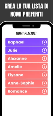 Nome del Bambino - Maschio e Femmina è molto più di una semplice applicazione: è la tua guida affidabile in un viaggio emozionante, ideato per rendere la scelta del nome un momento indimenticabile e gioioso. Scopri la vasta gamma di nomi a tua disposizione e lascia che l'ispirazione ti conduca al nome perfetto che accompagnerà la vita del tuo bambino.