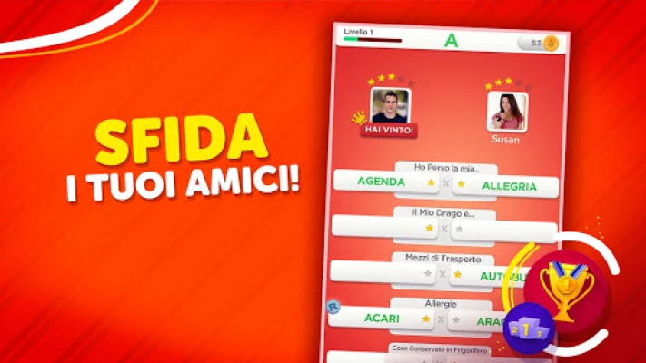 Ma Nomi Cose Città non è solo competizione; è anche crescita e scoperta. Conquista una ricca collezione di medaglie e riconoscimenti che attestano la tua evoluzione nel gioco, celebrando ogni vittoria e ogni traguardo raggiunto. E per chi ama viaggiare con la mente, l'app offre una straordinaria opportunità di espansione linguistica: immergiti nel gioco scegliendo tra italiano, inglese, spagnolo, tedesco, francese o portoghese brasiliano. Un modo brillante per imparare e praticare nuove lingue divertendoti. Lasciati travolgere dall'ingegno e dalla cultura, e scopri quanto lontano puoi arrivare con Nomi Cose Città!